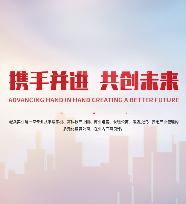 深圳市老兵实业有限公司(以下简称“老兵实业”)创建于2004年。创始人胡祥先生是一名复员军人,他将军人优良的品质和工作作风融合到公司管理中,形成一套独特的企业管理模式。经过15年发展,老兵实业已发展成一家集写字楼投资运营管理、高科技产业园投资运营管理、商业投资运营管理、长租公寓投资运营管理、酒店投资、养老产业运营等领域为一体的综合性企业。